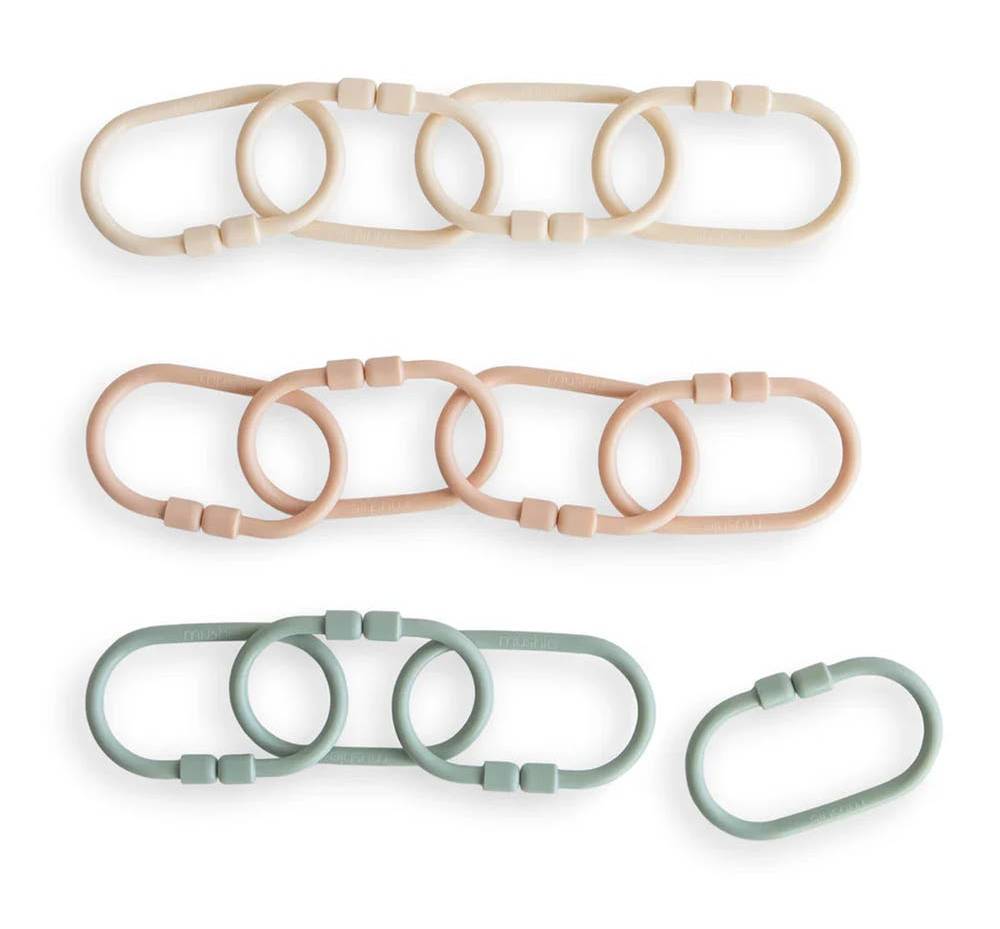 Mushie Chain Link Rings, Shifting Sand-Blush-Cambridge Blue
