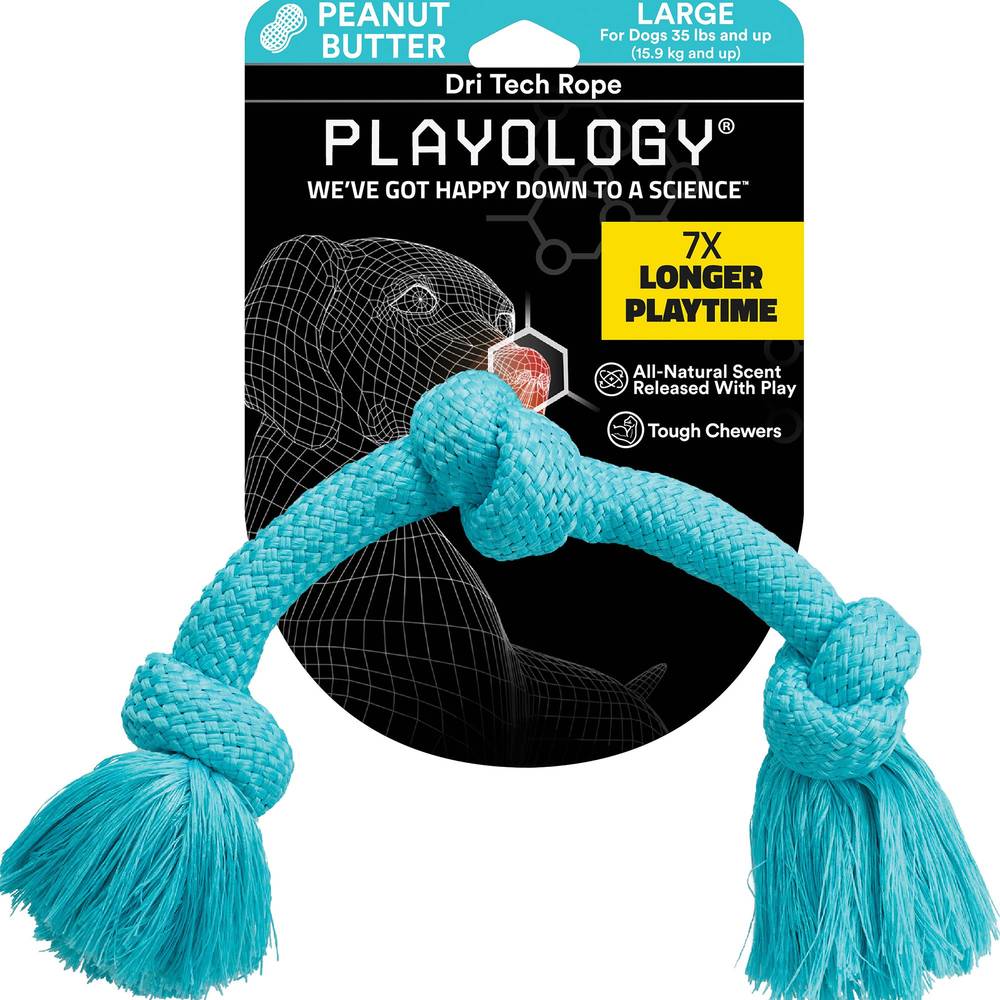 Playology Puppy Sensory Rope Scented Dog Toy, Peanut Butter, Large, Blue