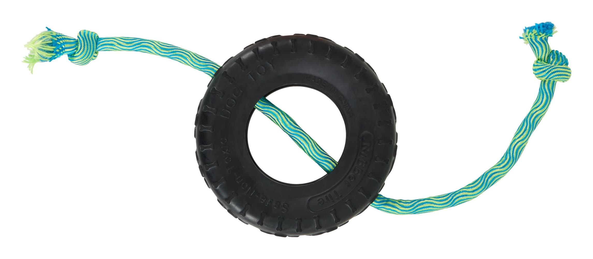 Joyhound Game on Knotted Rope With Rubber Tire Dog Toy, Small, Teal