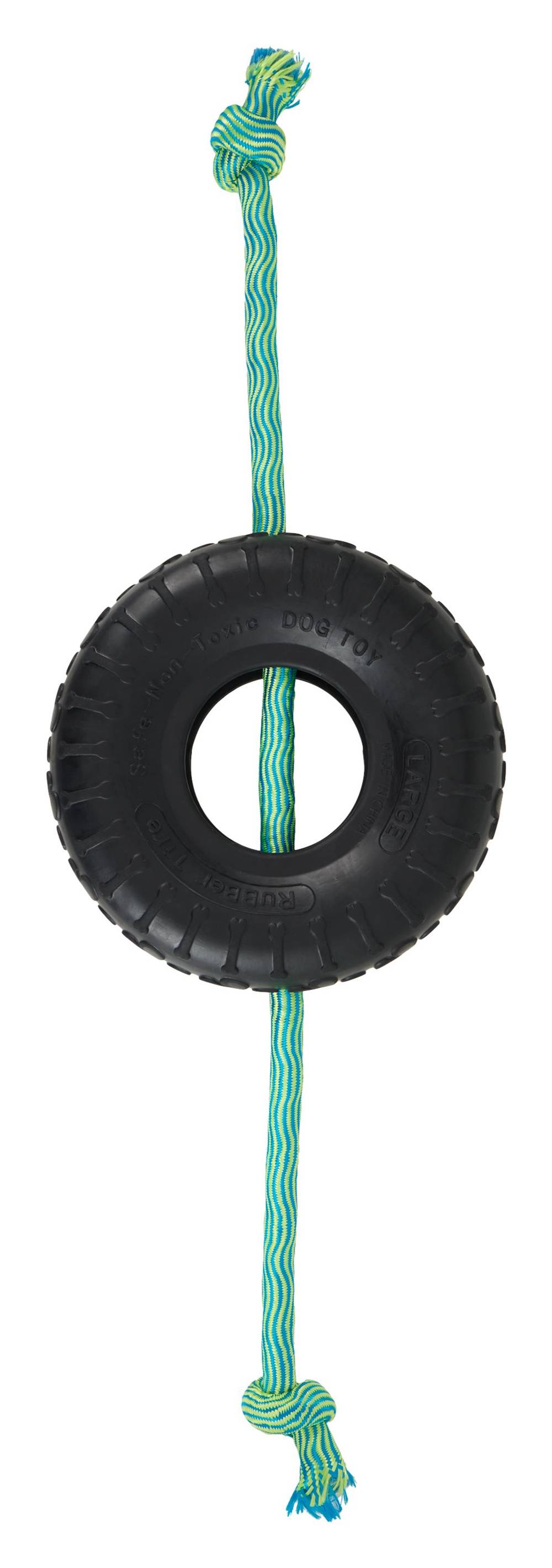 Joyhound Game on Knotted Rope With Rubber Tire Dog Toy, Large, Teal