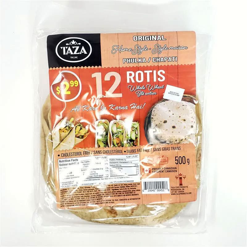 Taza Original Whole Wheat Phulka Rotis (500 g, 12 ct)