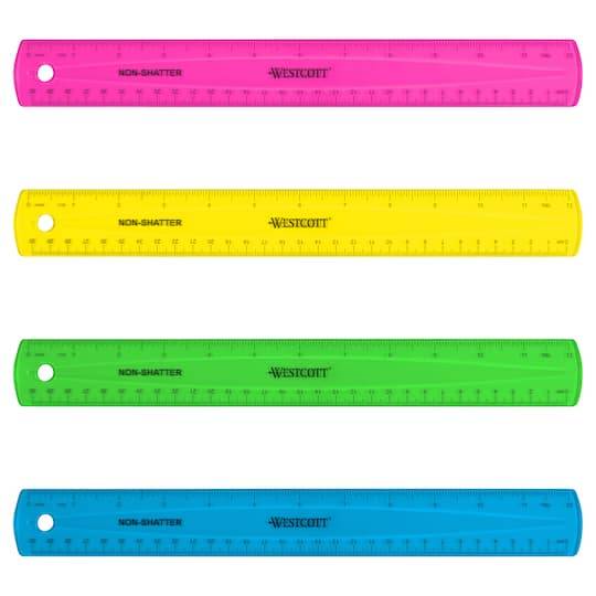 Westcott Shatterproof Ruler, 12 in, Assorted
