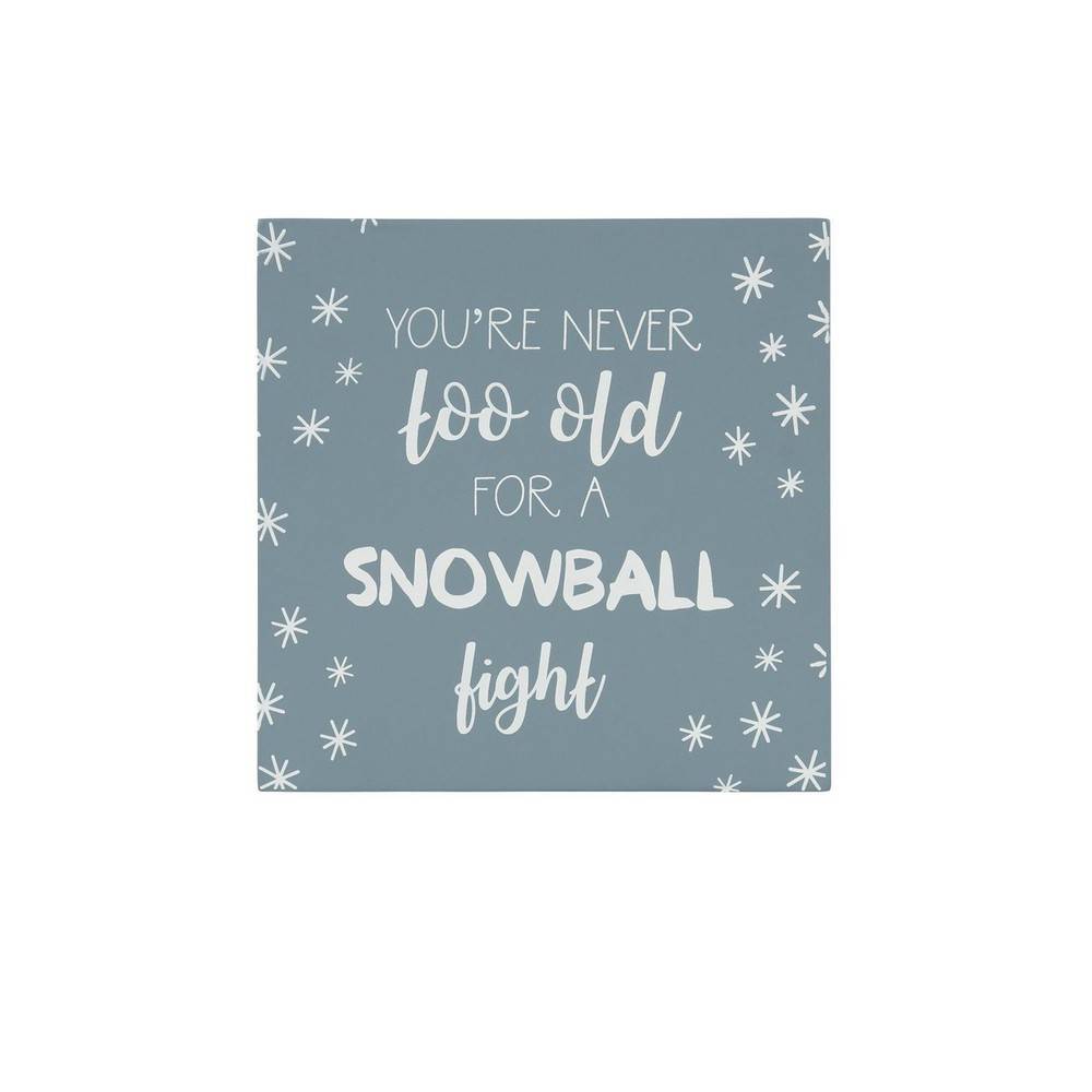 Uniek "You're Never Too Old For a Snowball Fight" Box Top Art