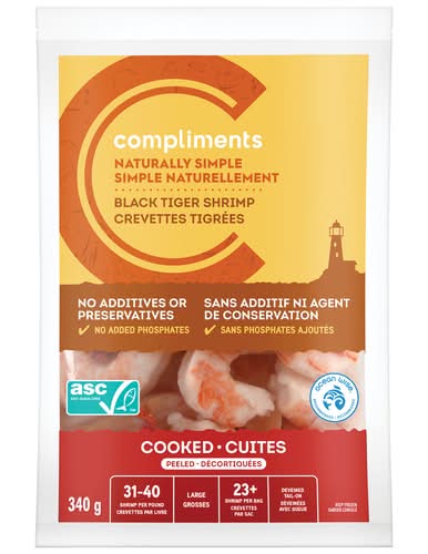 Compliments Naturally Simple Frozen Black Tiger Shrimp (340 g)