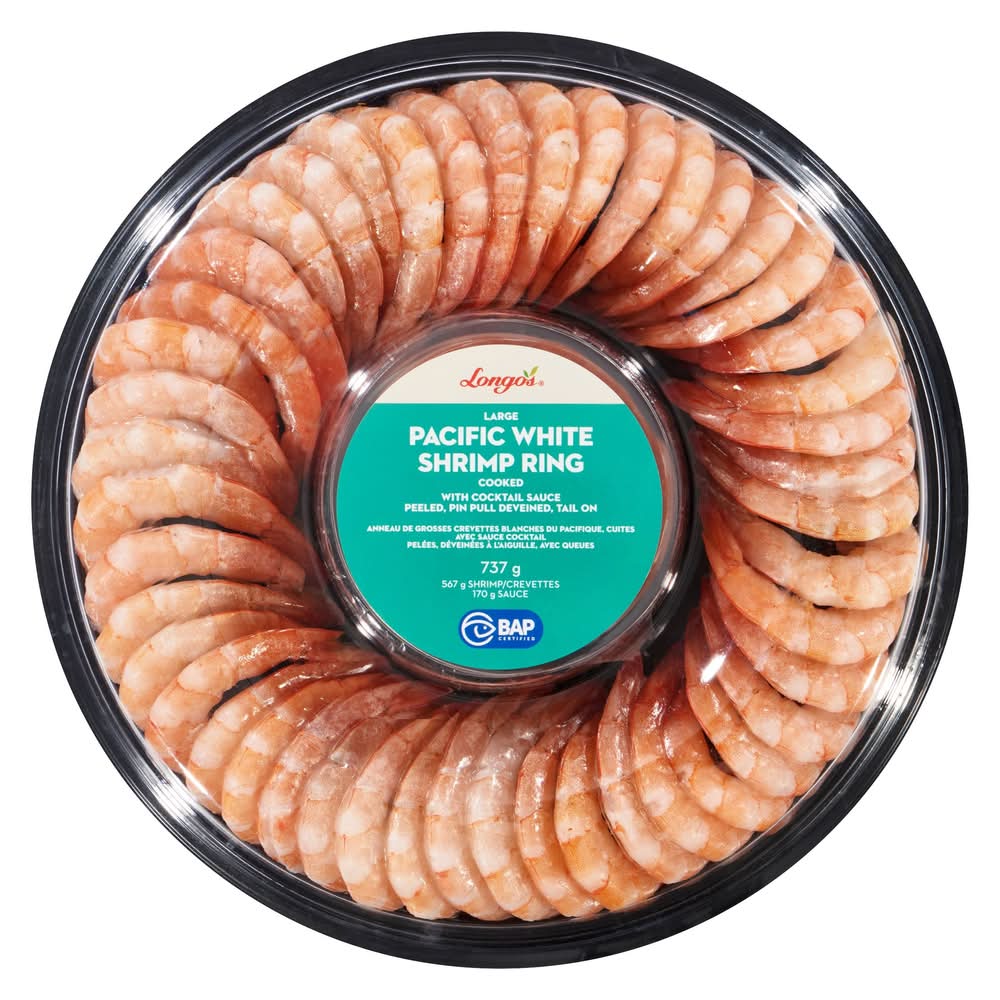 Longo's Cooked Pacific White Peeled & Tail on Shrimp Ring, Large (737 g)