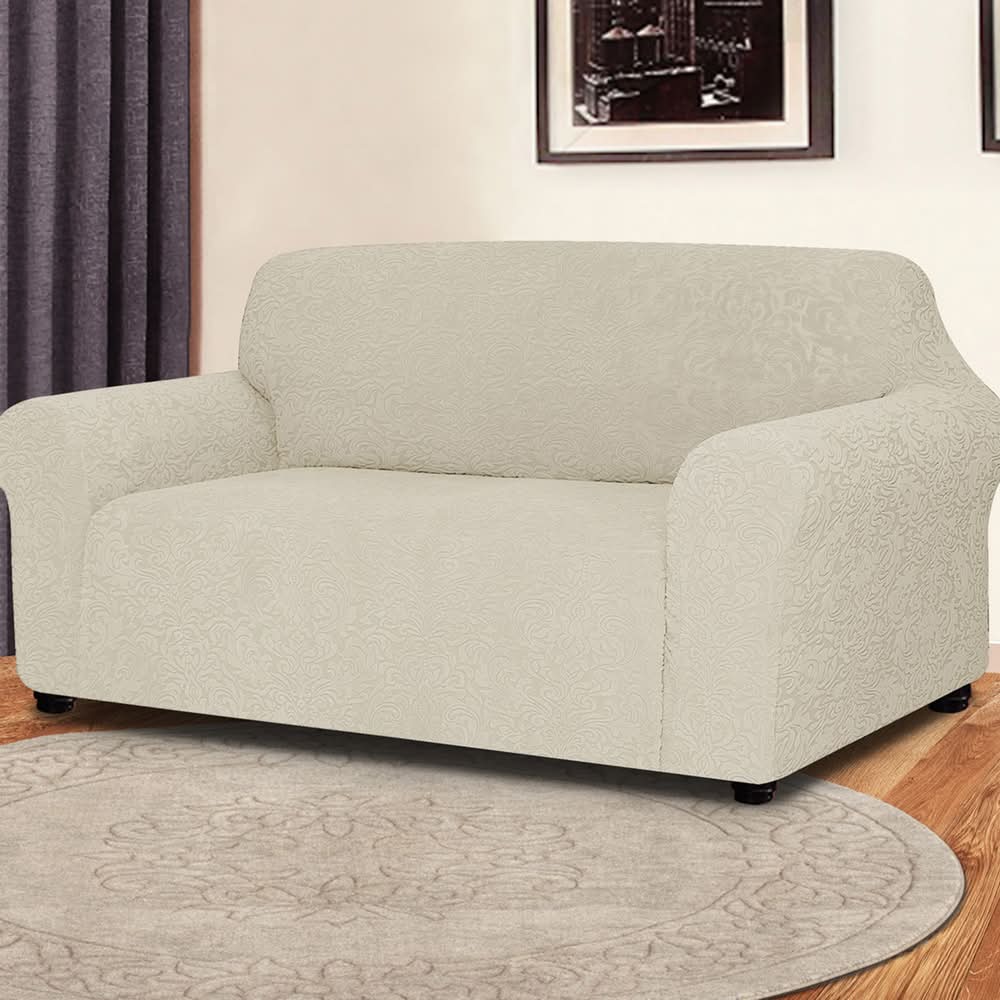 Jacquard Floral Stretch Loveseat Cover, Linen