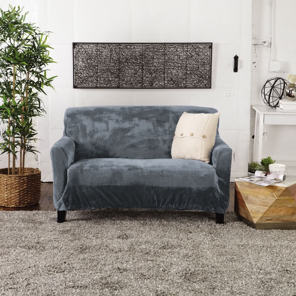 Mainstays Smartfit Plush Grey Sofa Furniture Cover