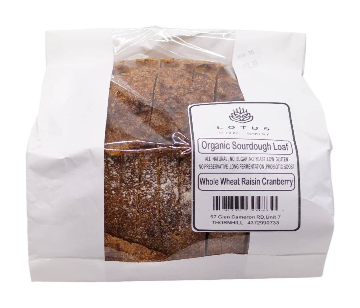Lotus Flour Bakery Organic Whole Wheat Raisin Cranberry Sourdough Loaf