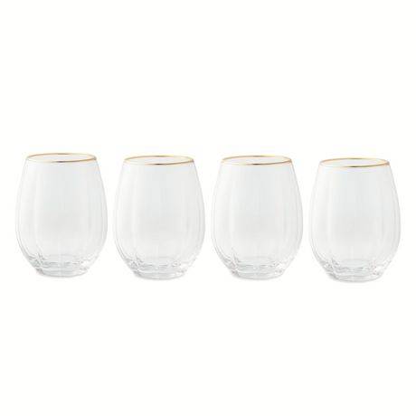 Thyme & Table Scalloped Stemless Wine Glass Set With Gold Trim (4 ct)