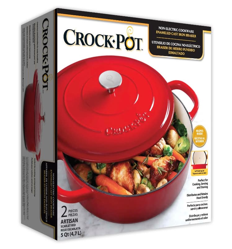 Crock-Pot Artisan Enameled Cast Iron Braiser Pan With Lid 5 Qt, Scarlet Red (2 ct)