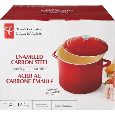 President's Choice Enameled Carbon Steel Stock Pot 11.4 L, Red