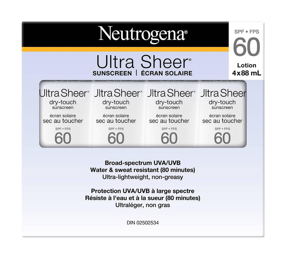 Neutrogena Ultra Sheer Dry Touch Sunscreen Spf 60 (4 x 88 ml)