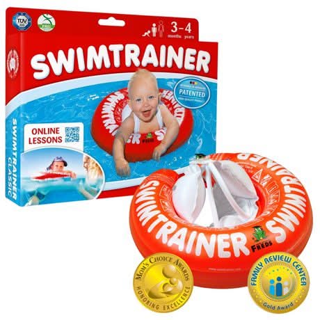 Freds Swim Academy Classic Swim Trainer With Baby Pool Float Ring, 3M-4 Years, Red
