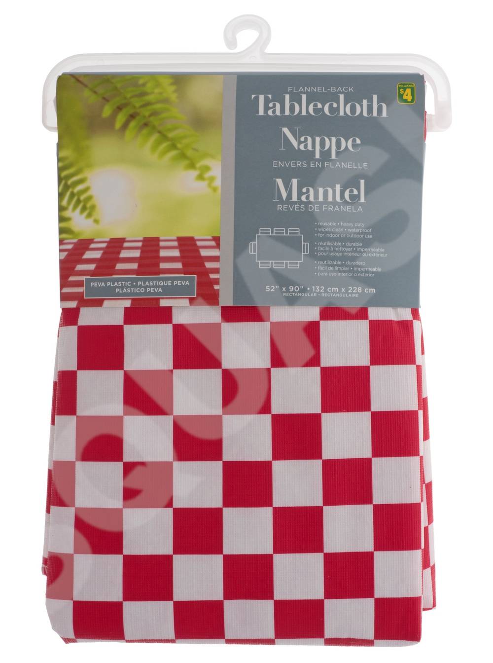 Checkered Flannel-Back Tablecloth, 52x90 in, Red-White