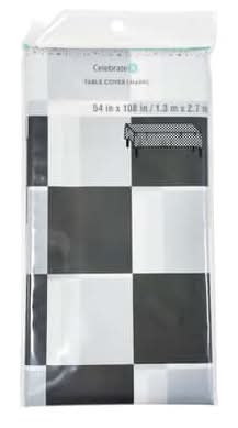 Celebrate It Checker Plastic Table Cover, 54x108 in, Black-White