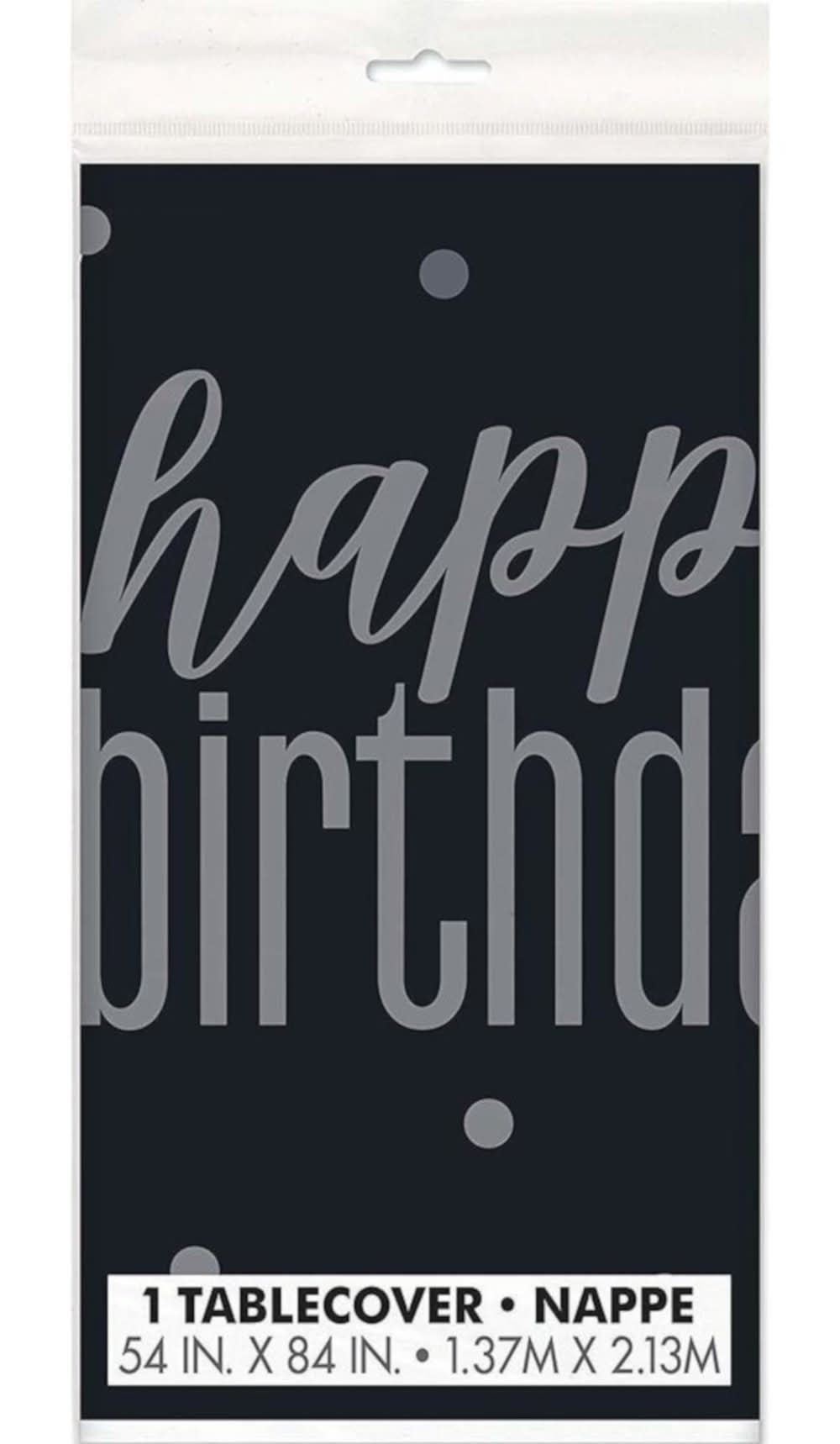 Unique Glitz Happy Birthday Table Cover, 54x84 in, Black