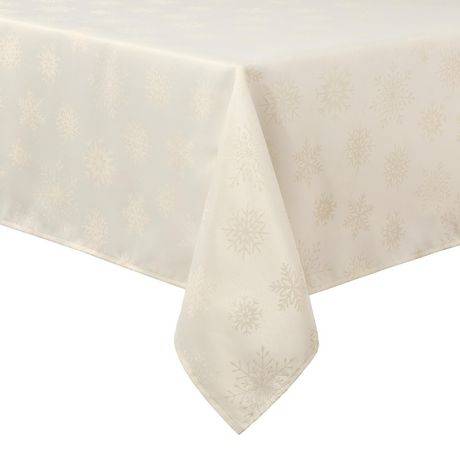 Holiday Time Snowflake Damask Fabric Tablecloth, 60"X102"