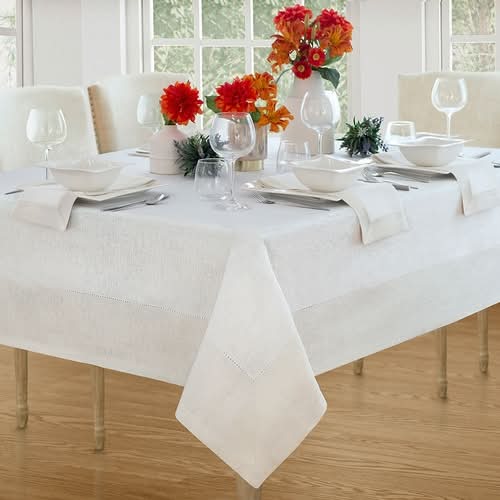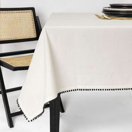 Thyme & Table Rectangle Tablecloth, 84 in, Pom White