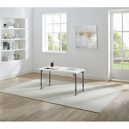 Mainstays Adjustable Height Folding Plastic Table, 4 ft, White