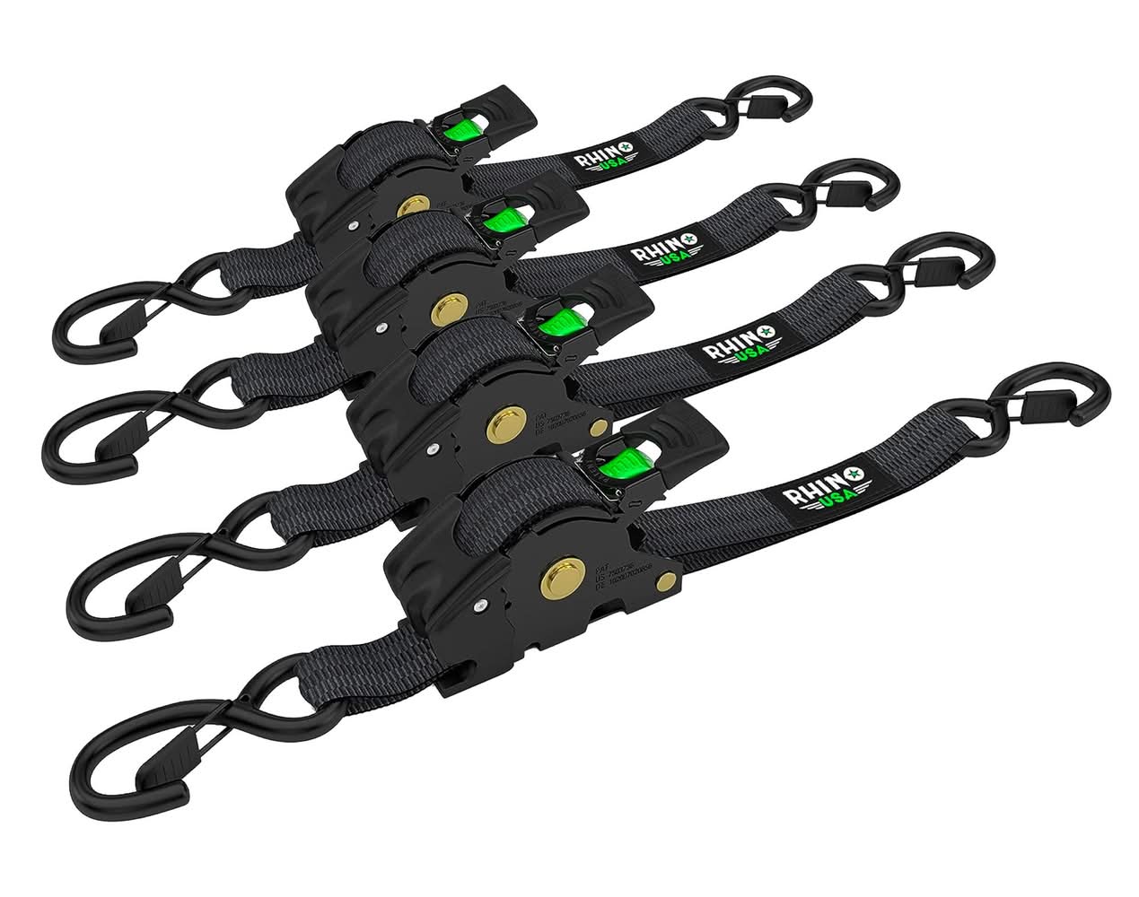 Rhino USA Retractable Ratchet Straps, 1 in x 10 ft, Black-Green (4 ct)