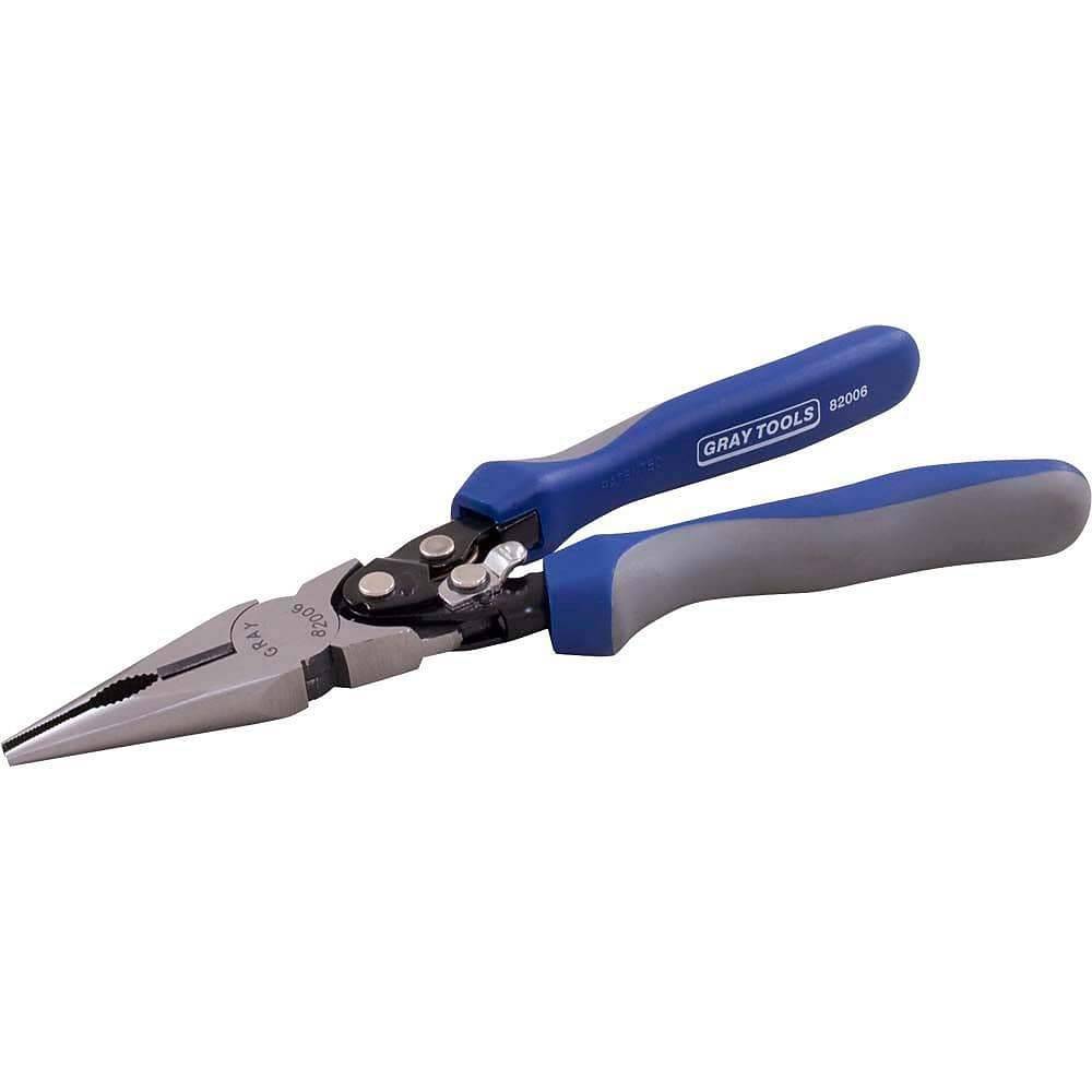 Gray Tools 8" Needle Nose Straight Cutter Pliers, With Vinyl Grips, 2-3/4" Jaw
