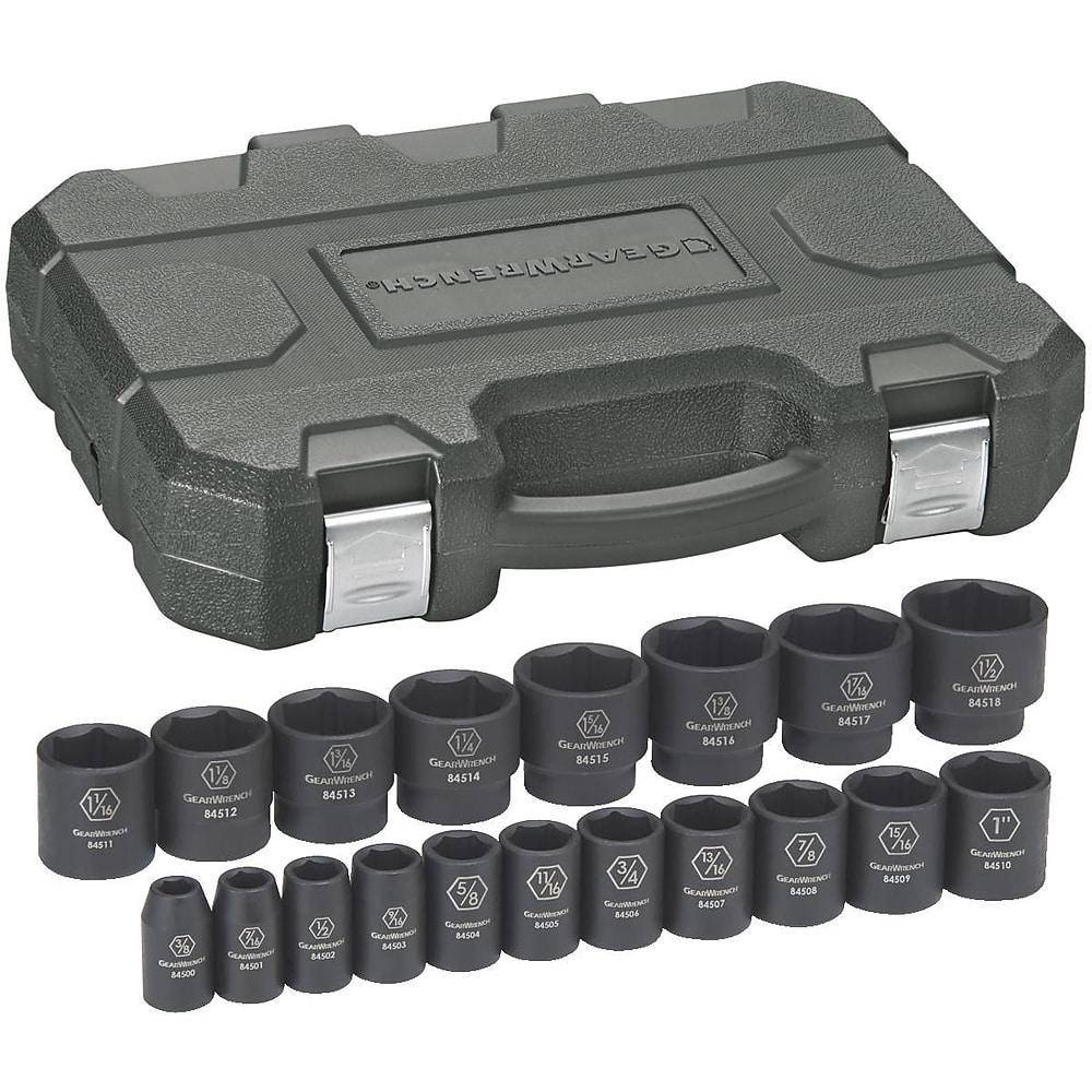 Gearwrench 1/2" Drive 6-point Sae Impact Socket Set, 19-piece