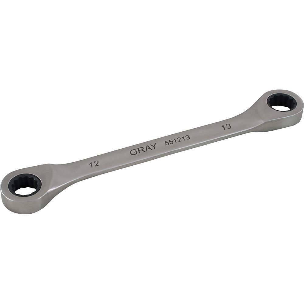 Gray Tools 17Mm X 19mm Double Box End, Fixed Head Ratcheting Wrench, Stainless Steel Finish