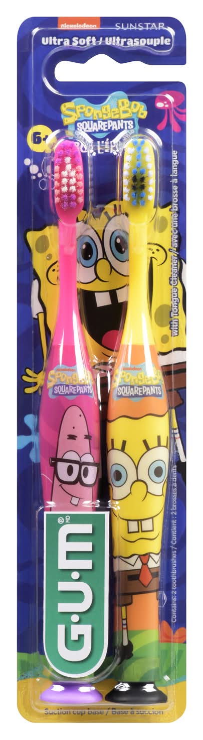 GUM Spongebob Toothbrush Ultra Soft Bristles 6+ Years, Pink/Yellow (2 ct)