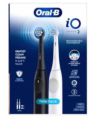 Oral-B Io Series 2 Rechargeable Electric Powered Toothbrush, Black-White (2 ct)