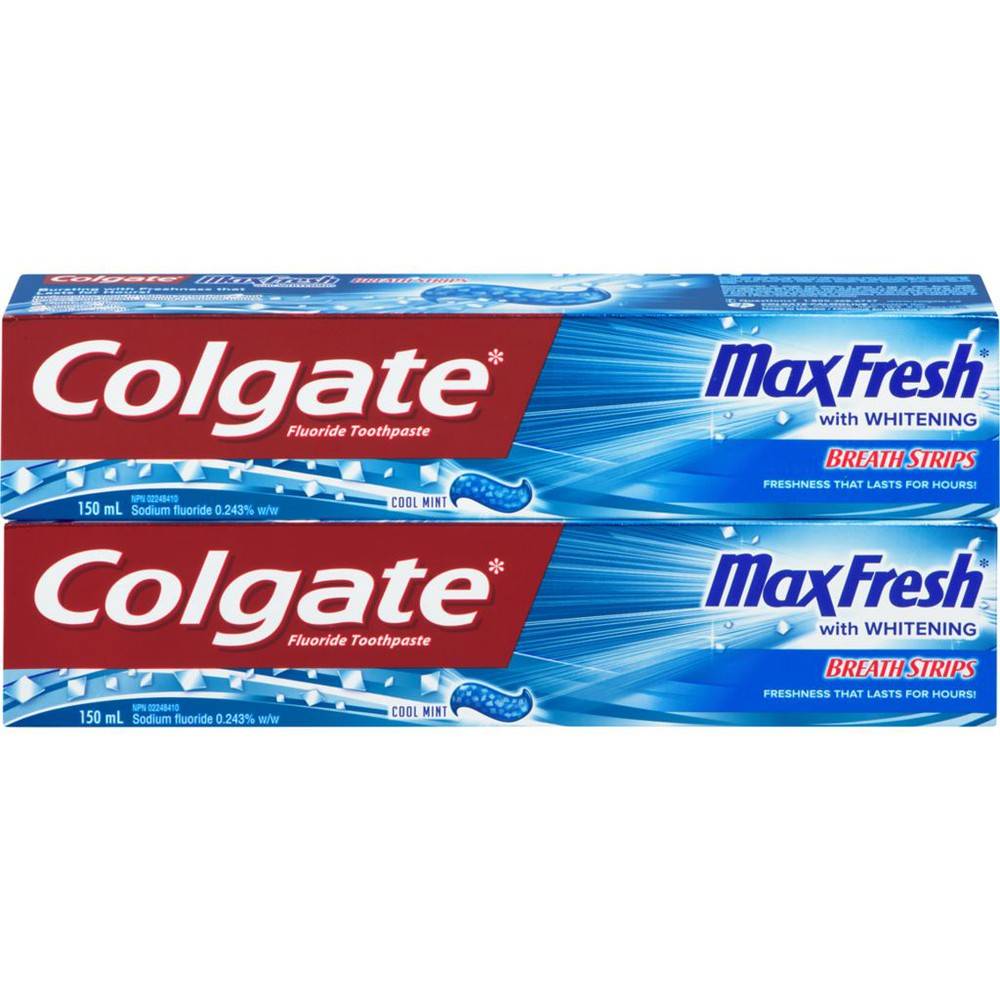 Colgate Max Fresh Whitening Fluoride Gel Toothpaste, Cool Mint (300 g, 2 ct)