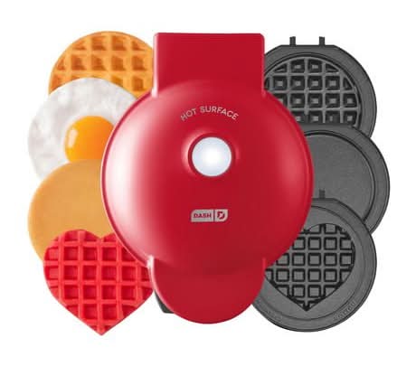 Dash Multimaker Mini System Waffle Maker With Removable Plates, 4”, Red