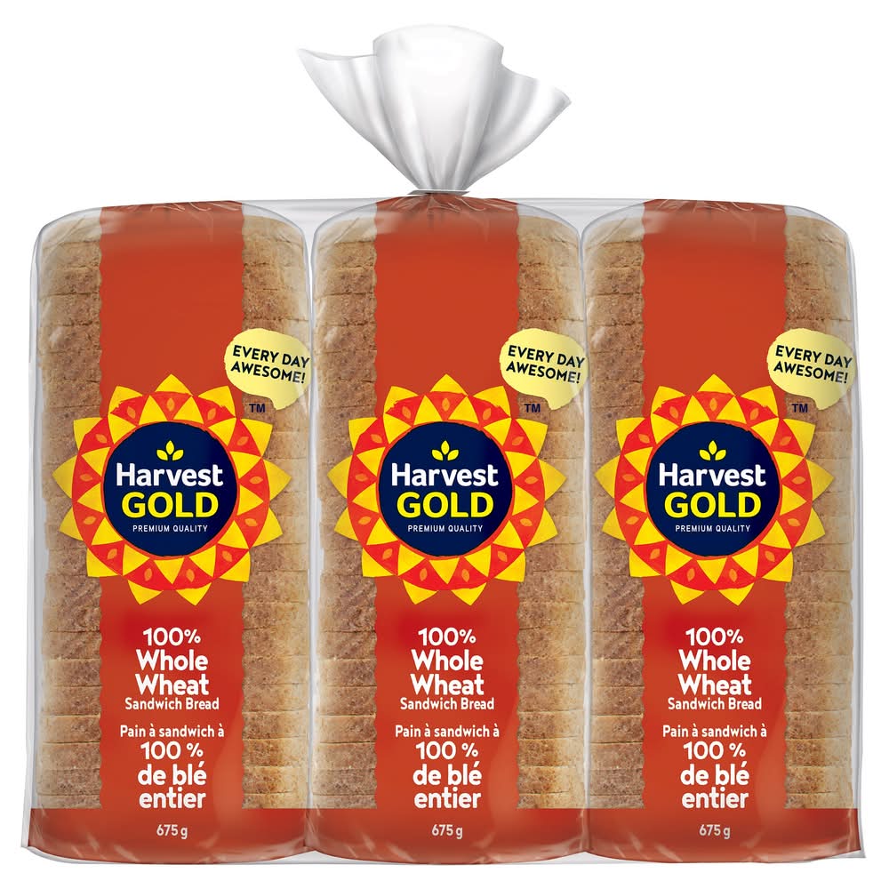 Harvest Gold 100% Whole Wheat Bread (3 x 675 g)