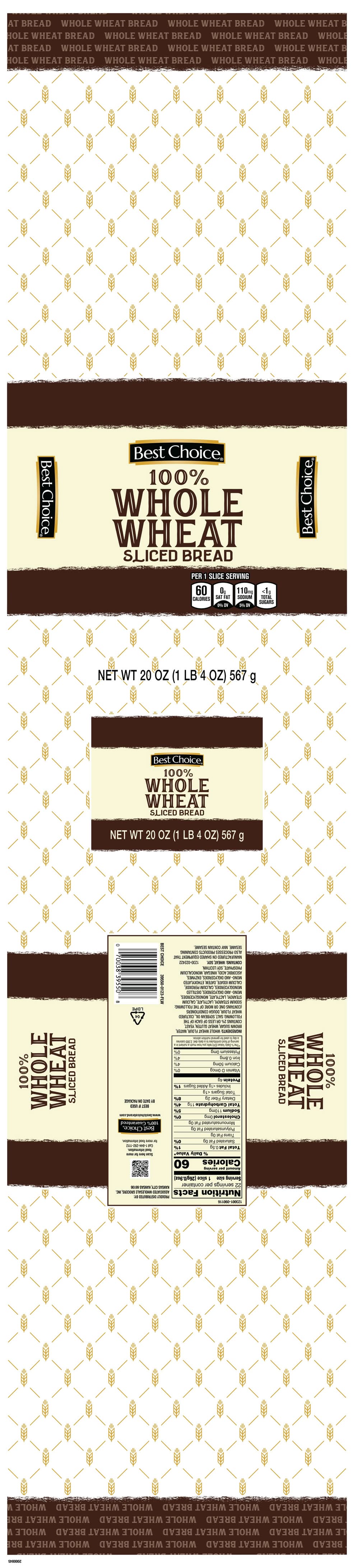 Best Choice 100% Whole Wheat Sliced Bread (20 oz)
