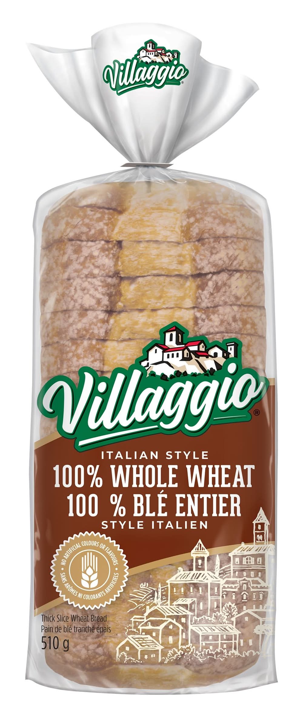 Villaggio 100% Whole Thick Slice Wheat Bread, Italian Style (675 g)