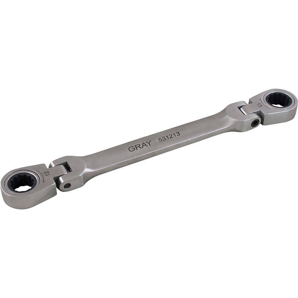 Gray Tools 1/2" Combination Flex Head Ratcheting Wrench, Stainless Steel Finish