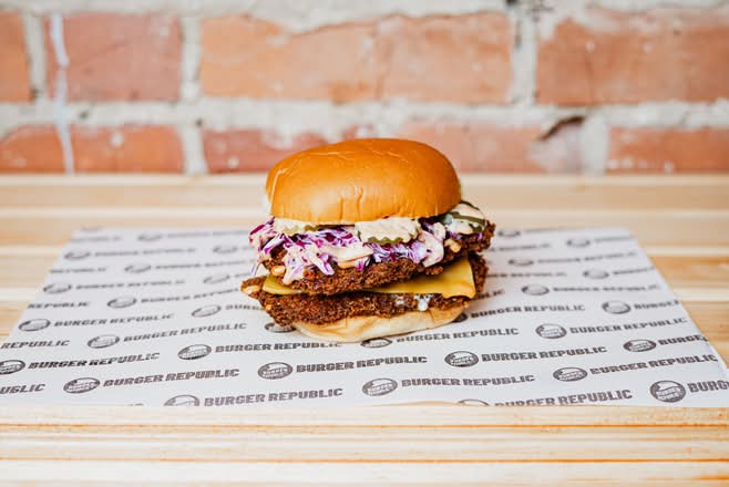 4 oz Crispy Fried Chicken, Pickles, Magic Purple Coleslaw, Republic Sauce