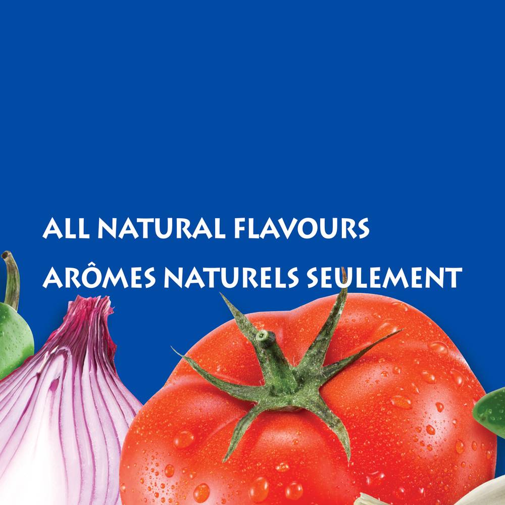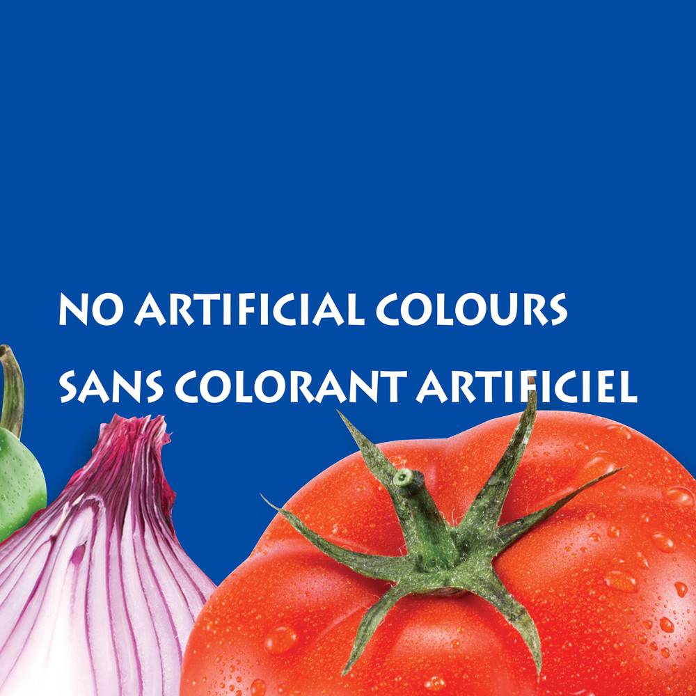 Ingredients: Tomato puree (water, tomato paste), Diced tomatoes (tomatoes, tomato juice, citric acid, calcium chloride), Onions, Jalapeño peppers, Vinegar, Salt, Potassium chloride, Garlic powder, Natural flavour.