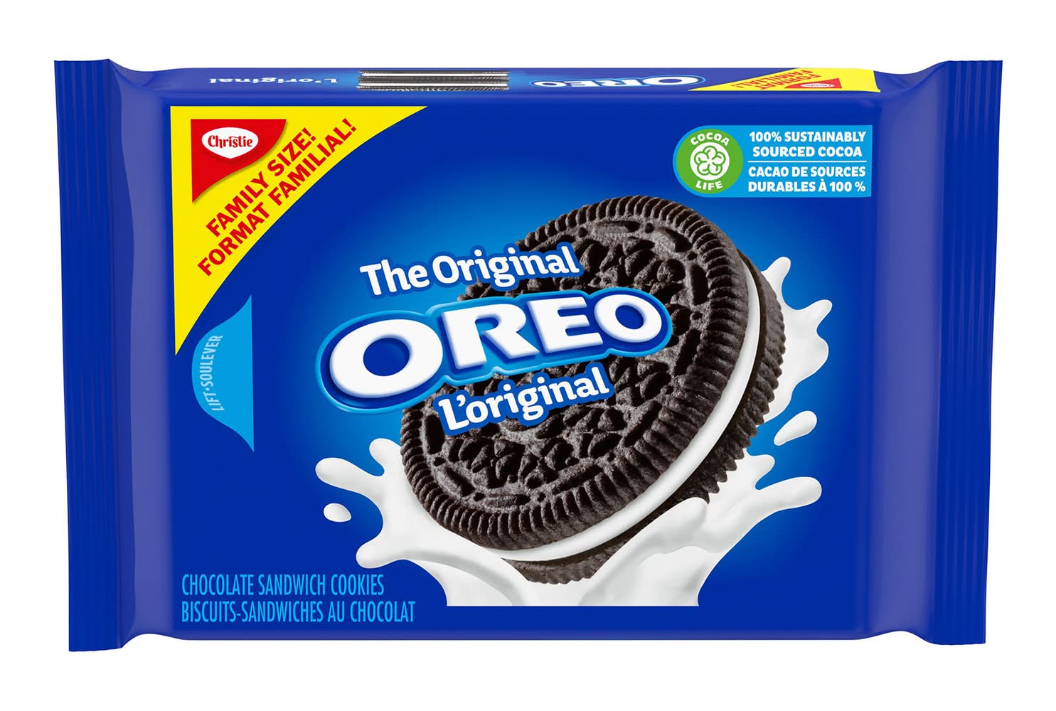 Enjoy the delightful taste of Oreo original sandwich cookies in a family size pack, perfect for sharing with family and friends or savoring by yourself. Each resealable pack ensures freshness, making these iconic cookies convenient for various occasions from gatherings to road trips. Indulge in the classic flavor combination of smooth cream filling between two rich chocolate cookies, crafted with real cocoa. Flavour: Chocolate