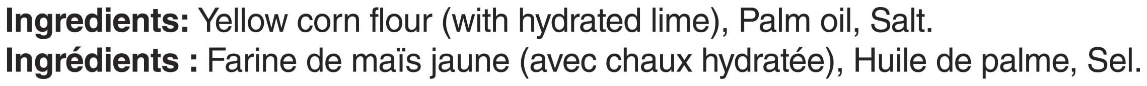 Ingredients: Farine De Maïs Jaune (Avec Chaux Hydratée), Huile De Palme, Sel