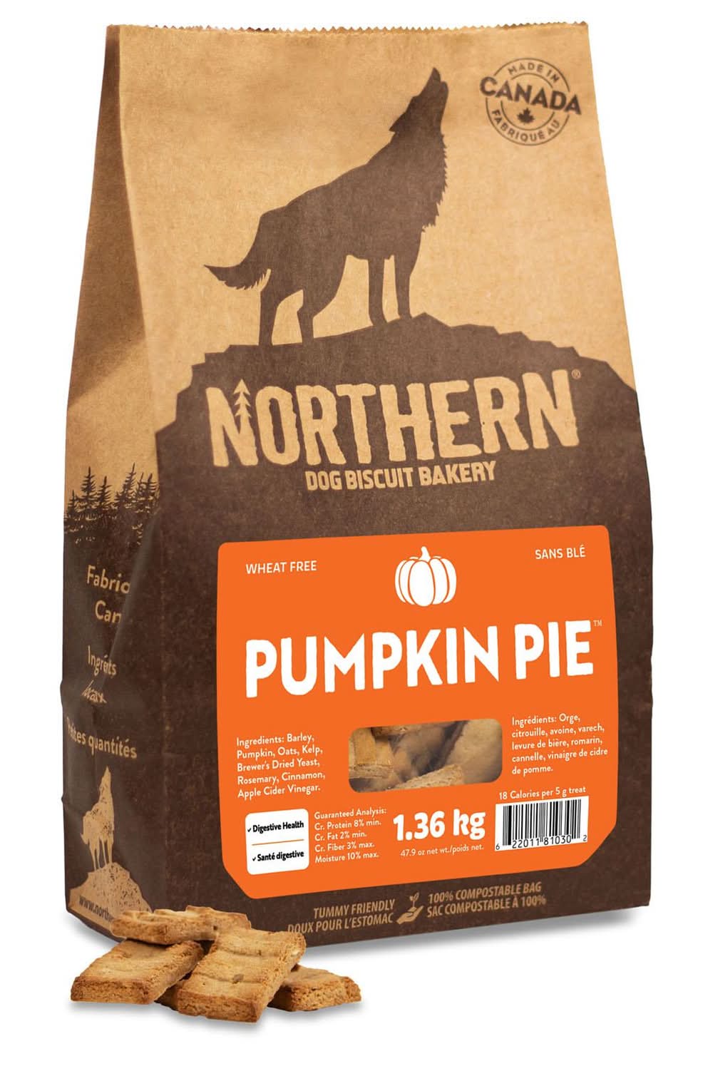 Northern Pet Pumpkin Pie biscuits are excellent for sensitive stomachs and overall digestive health. These feature local Ontario pumpkin blended with hand harvested Atlantic kelp - a superfood immune booster! Topped with cinnamon this vegan recipe is loved by all dogs. Slowly baked in small batches with whole barley and rolled oats, Northern biscuits are naturally preserved and packaged in a 100% compostable bag! At only 18 calories per biscuit, these treats are perfect for treating, rewarding and bonding with your dog. This is a vegan formula which includes ZERO Animal Products. Size: 2.99 lb