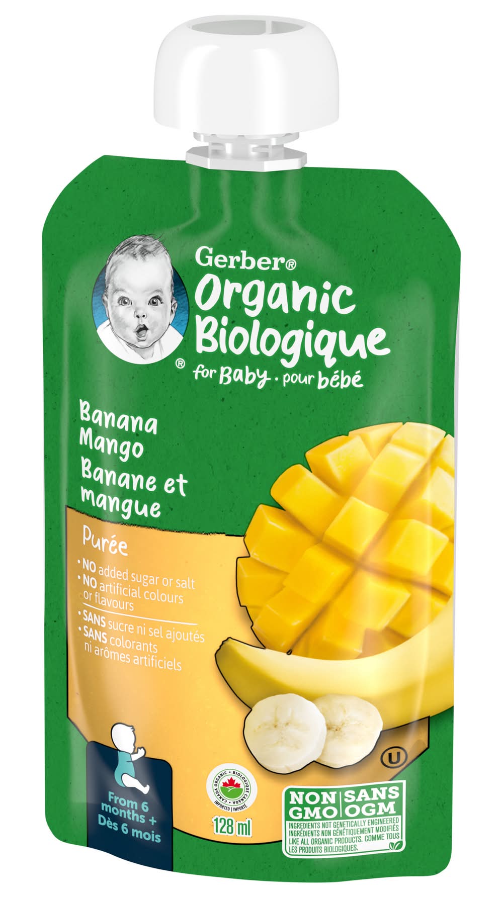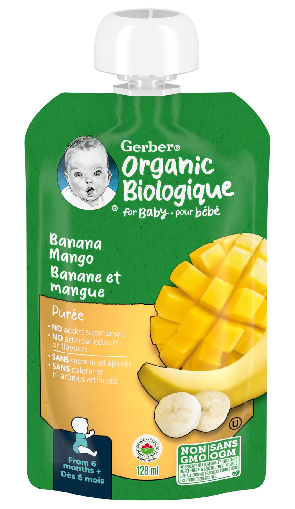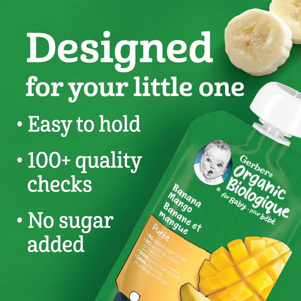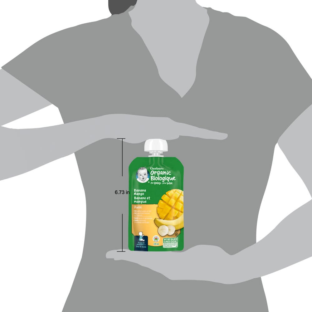 Gerber Organic Biologique Baby Food Puree 6+ Months, Banana Mango (128 ml)