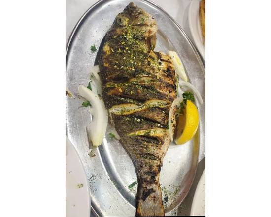 Grilled sea bass crusted walnuts, mixed Aleppo spices, lemon, coriander and olive oil. Served with rice.