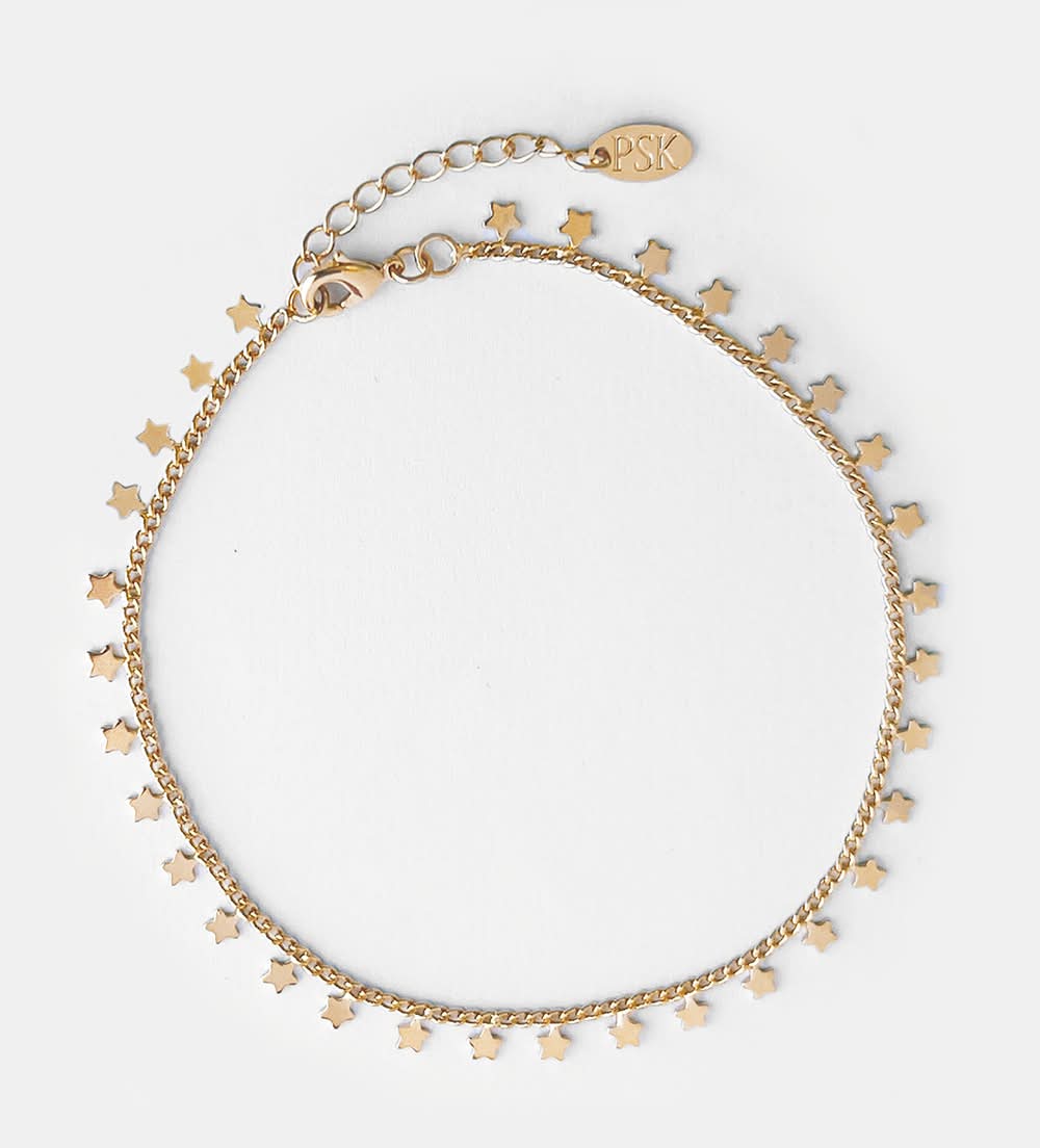 PSK · Tobillera enchapada en oro con estrellas - 22 cm