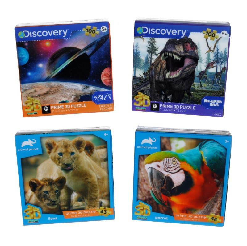 PRIME 3D · Puzzle 3d 48 a 100 pzas. discovery y animal planet