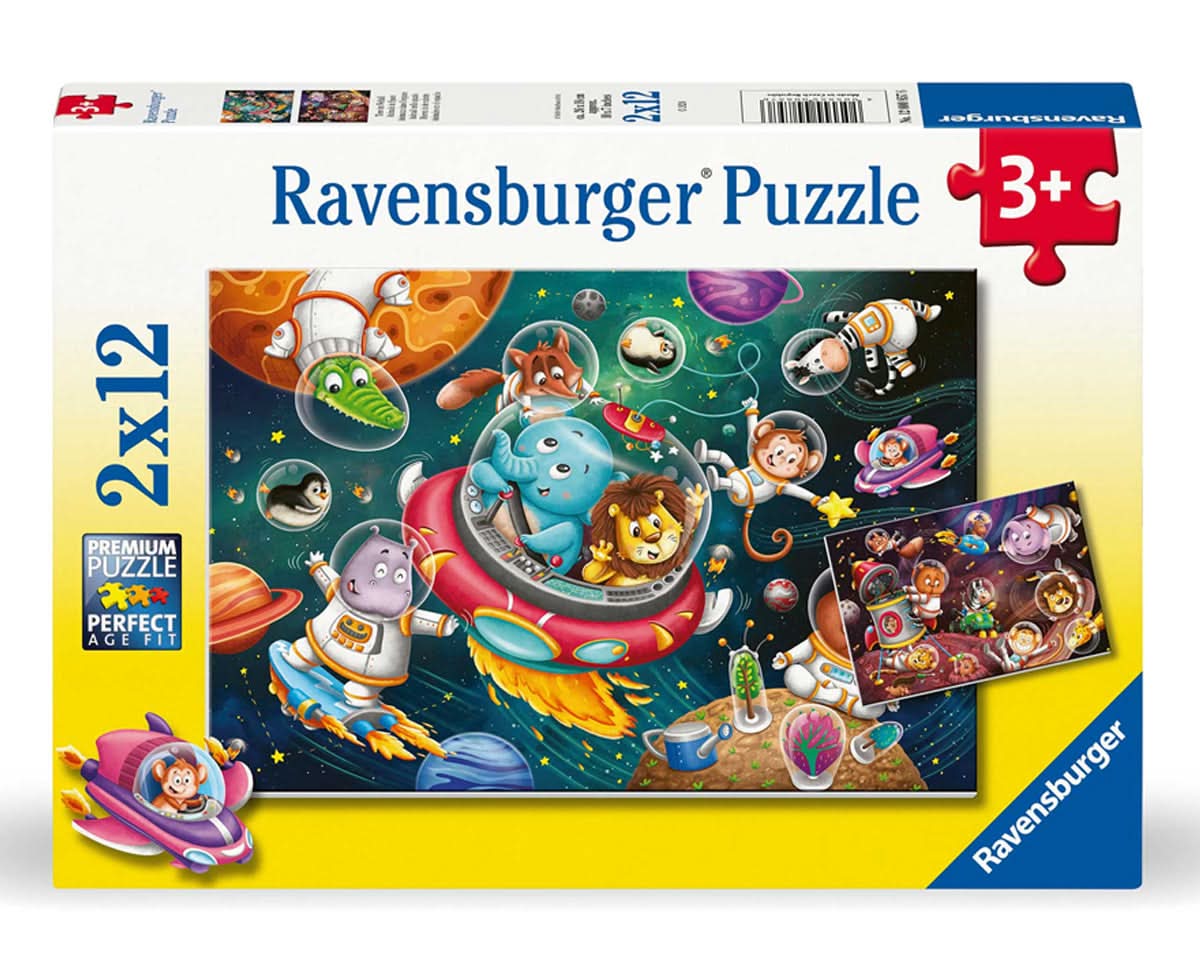 Ravensburger · Puzzle infantil estándar animales en el espacio - 26x18 cm (2 x 12 un)