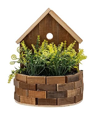 Planta Decorativa De Plástico En Casita De Mdf, 21x27x14 cm