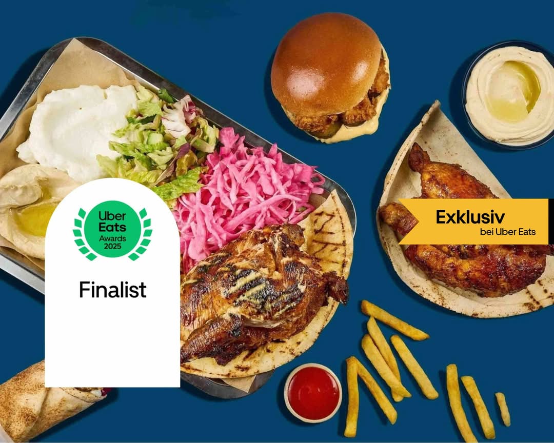 "Sehr leckere Chicken, auch die Bizeps sind toll gewürzt und sehr zart. Allgemein ist die Qualität sehr überzeugend. Nur das Rotkraut verstehen wir nicht, das ist viel zu sauer und nicht lecker. Die Soßen sind top. Wir bestellen wieder :)"