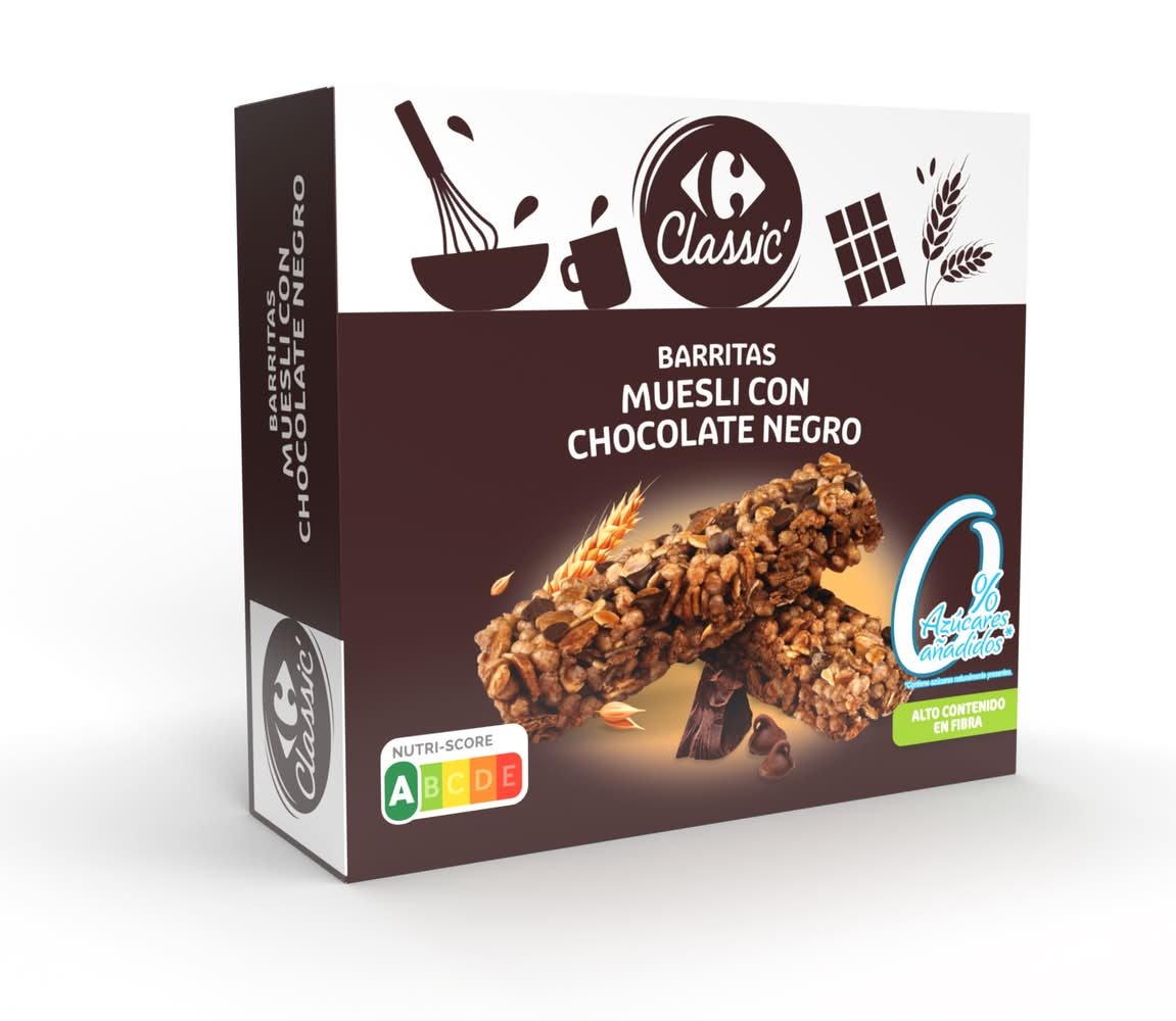 Barrita de cereal muesli con chocolate negro sin azúcar · Carrefour Classic' (6 x 22 g)