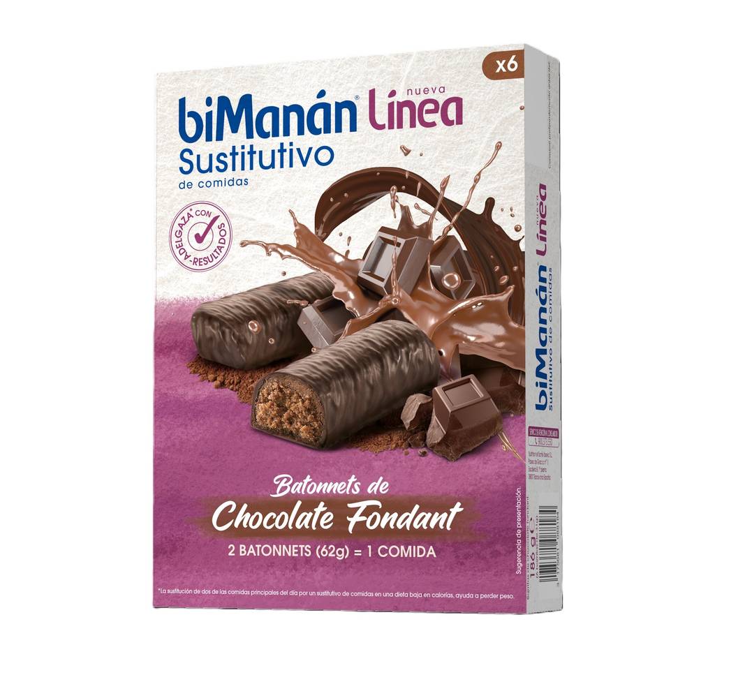 Nueva línea sustitutivo de comidas barrita bañada con chocolate negro · biManán (6 un)