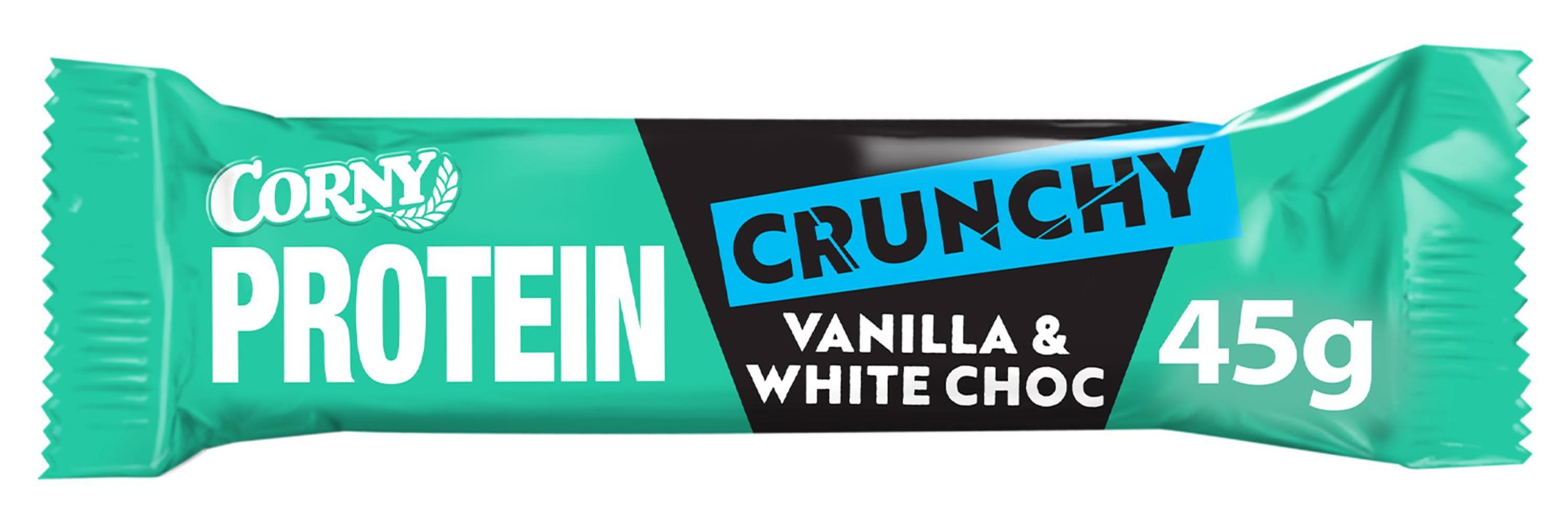 Protein crunchy vainilla y chocolate blanco · CORNY (12 x 45 g)